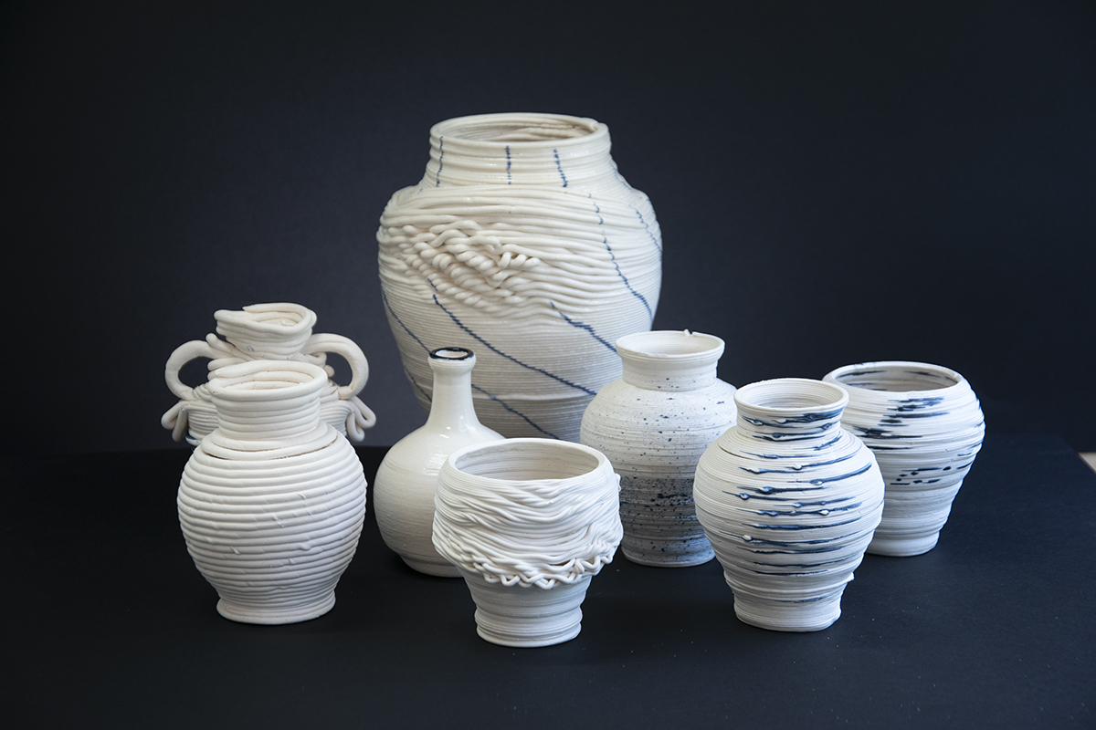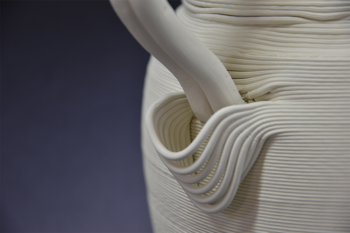 3D printing of porcelain, creating new and up-to-date expressions of traditional ceramic techniques.