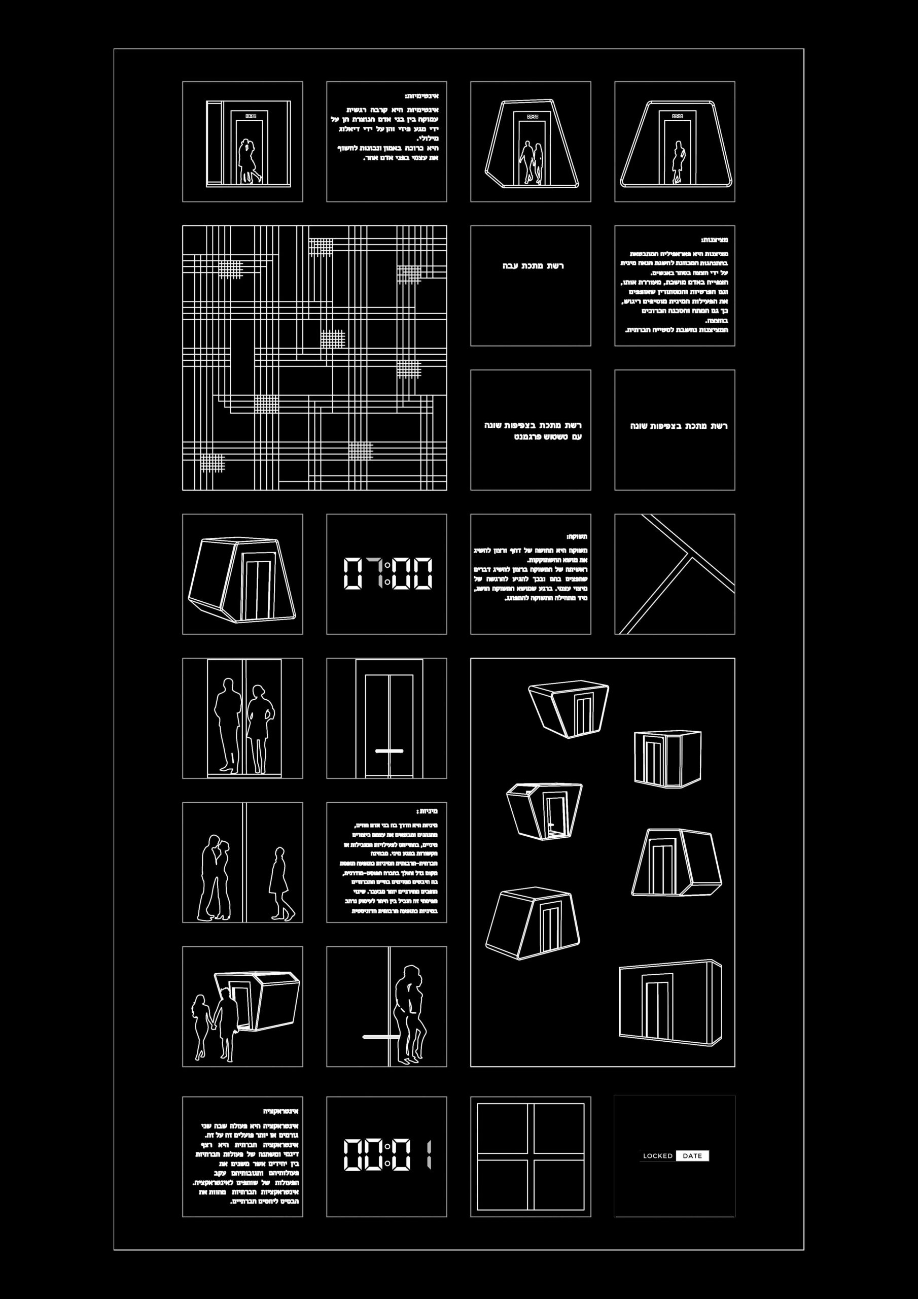 הפרויקט עוסק ביצירת מרחב למפגשים אינטימיים. תא הדייטים נוצר מתוך הצורך להחזיר אינטראקציות בין אנשים בעולם הווירטואלי לעולם הפיזי. המרחב הוא התממשות של פנטזיות ותשוקות מעוררי סקרנות, ריגוש ואי ודאות.