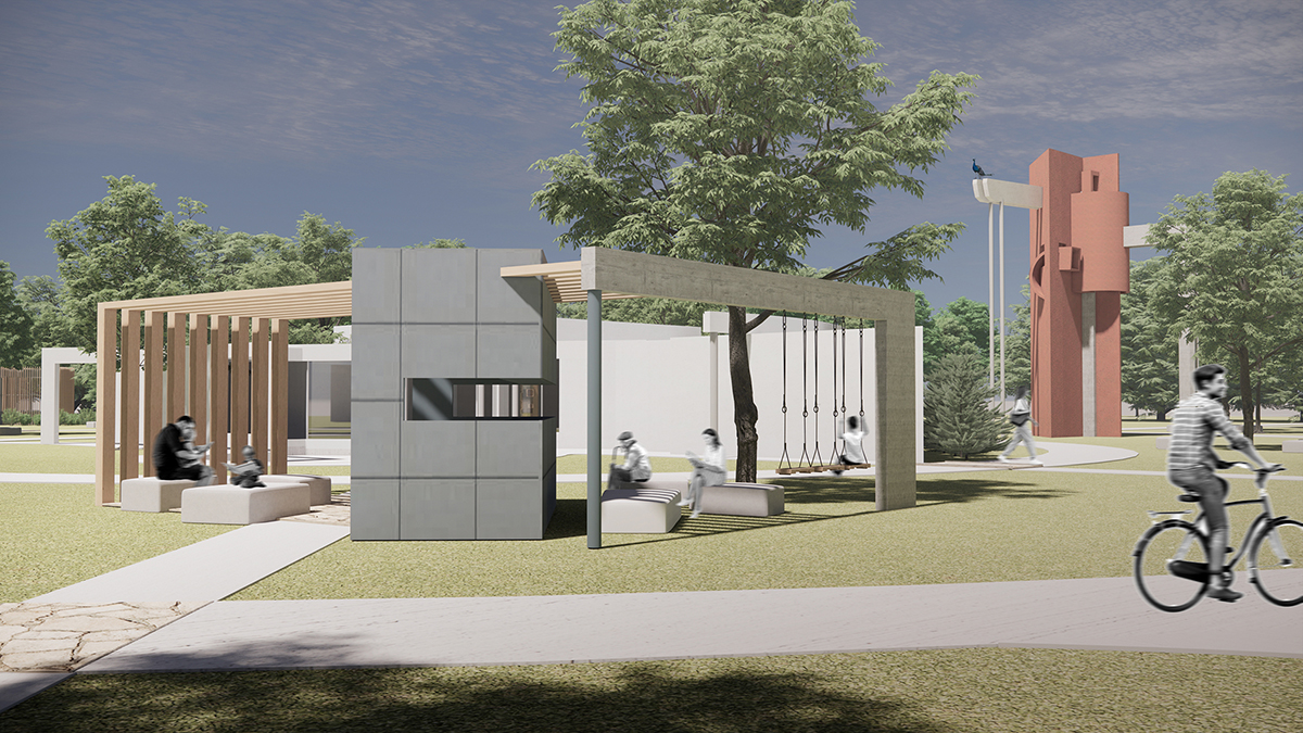 מרכז חברתי לאוכלוסייה הוותיקה במצפה אבי"ב. מועדון החברים מקבל את מקומו המרכזי והמשמעותי בנוף היישובי באמצעות פירוק הפרוגרמה לביתנים הפזורים במרחב הציבורי ומשמשים את הקהילה כולה.