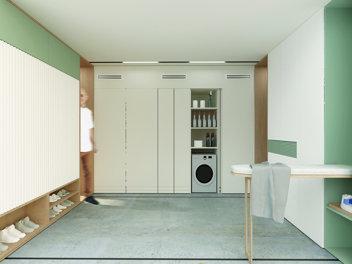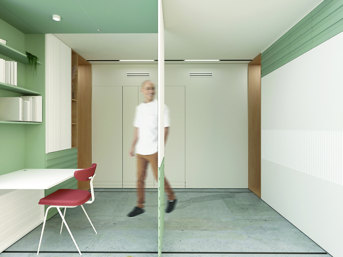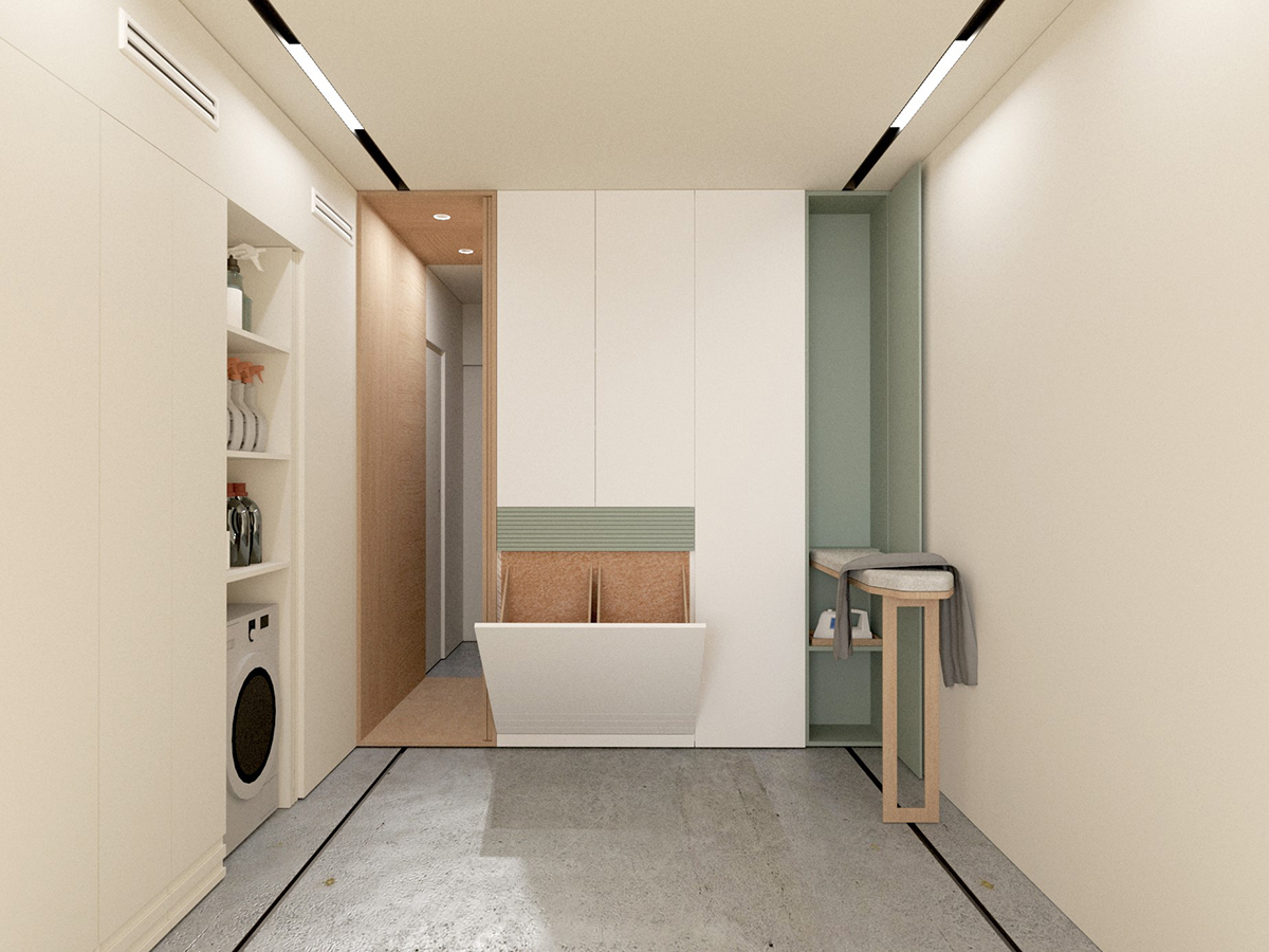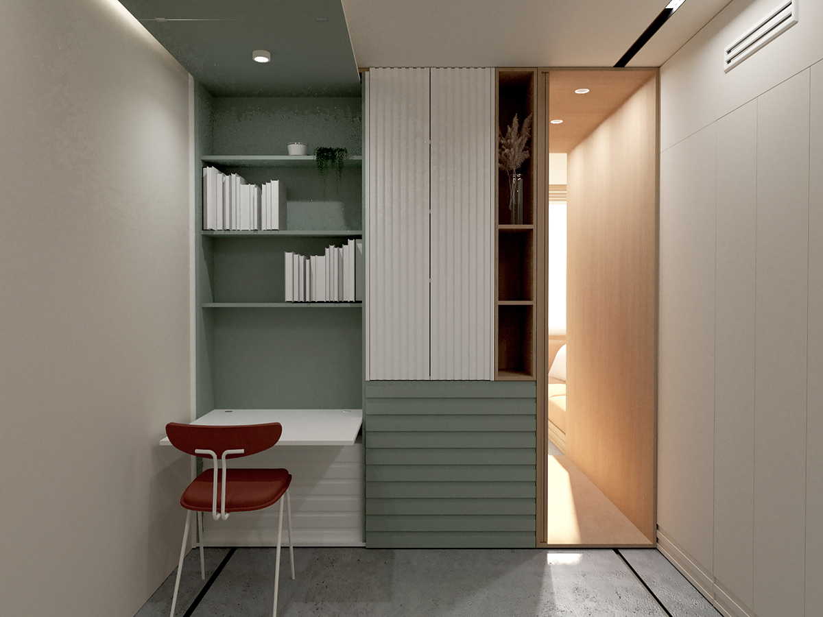 תכנון ועיצוב דירה לאדם יחיד באמצעות התאמת נגרות אינטגרלית מודולרית המאפשרת שילוב פונקציות מגוונות בדירת 30 מ"ר.