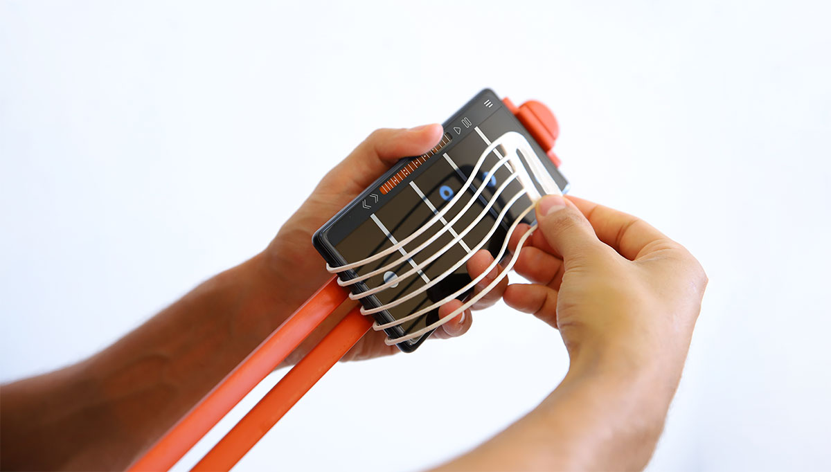 A simulator used to learn to play a musical instrument that interfaces with a mobile phone. The test case for the simulator was a guitar. Instructions are provided over the app, while maintaining the correct posture of the body when playing, and the app will connect to additional instrument to create music together.