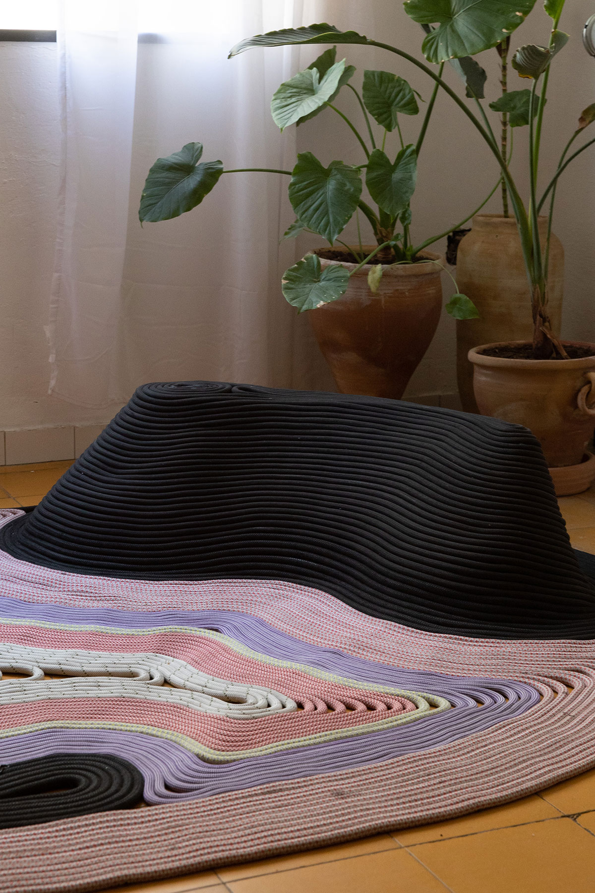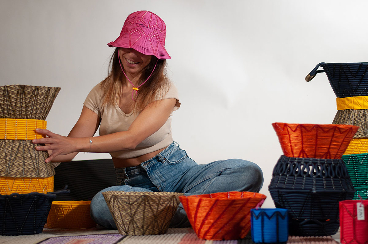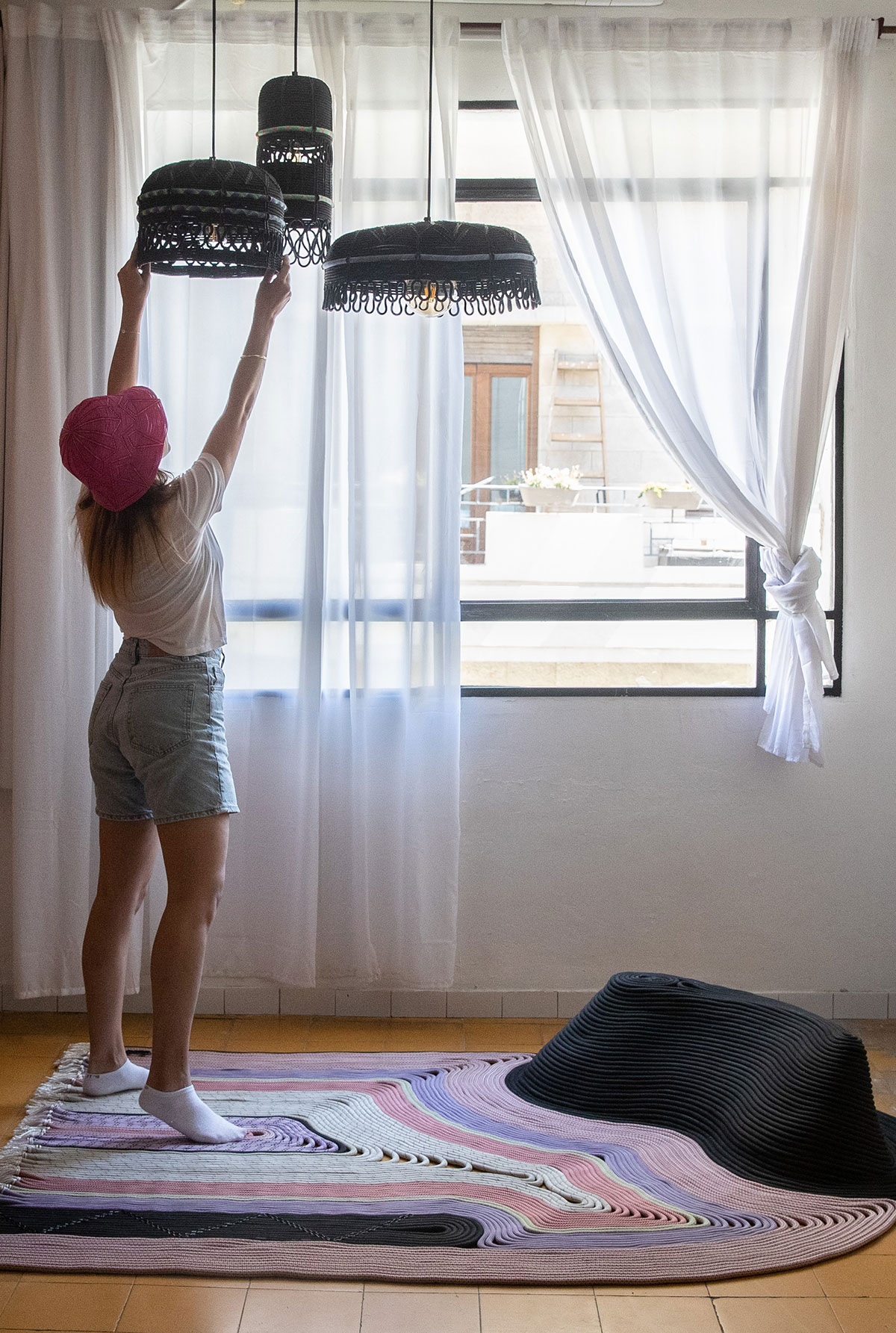 A new craft technique that uses the thermoplastic properties of used synthetic ropes to design a variety of products, including a rug you can lean on, lampshades, baskets and hats. The technique was inspired by the traditional Yemenite basket weaving craft.