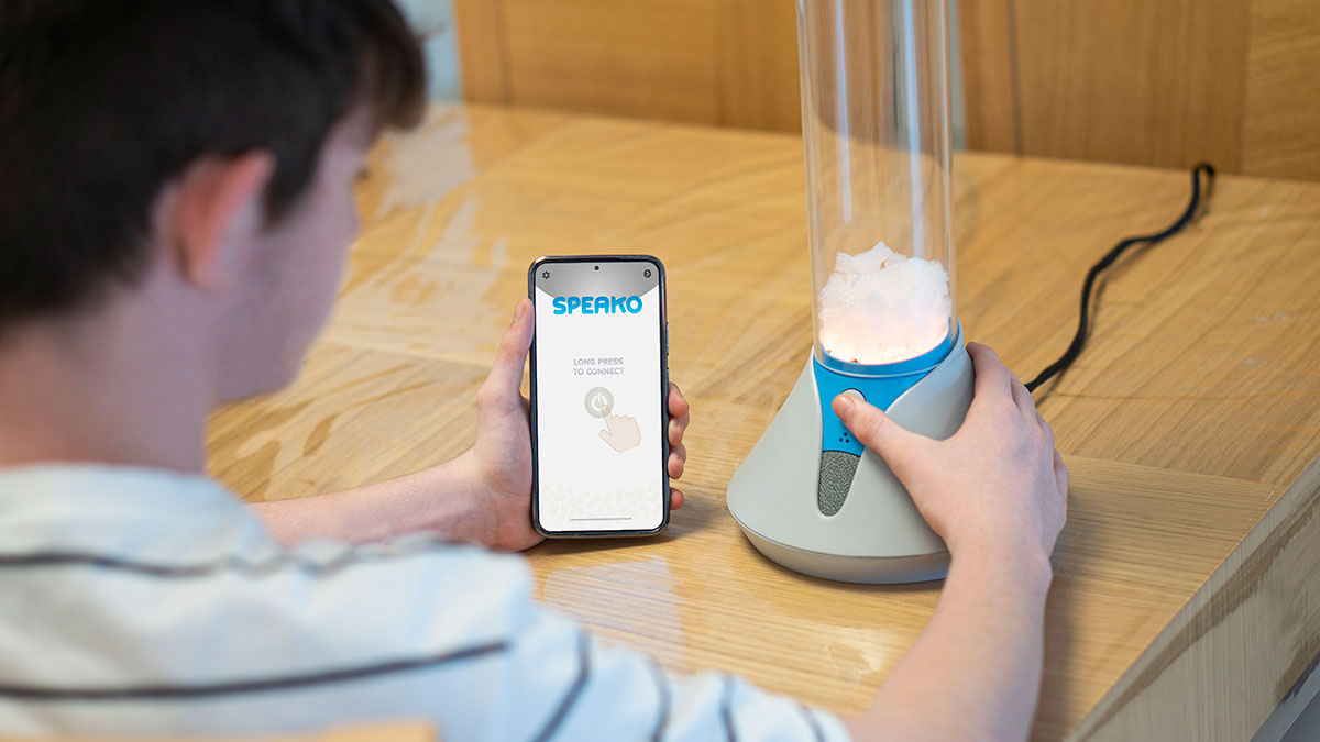 A game for treating stuttering among children. If the user maintains a proper speech rate, the balls float until a blue light appears, while an orange light appears when there is a deviation. Using the app, you can select different games and track the child’s progress.