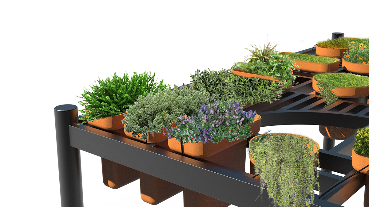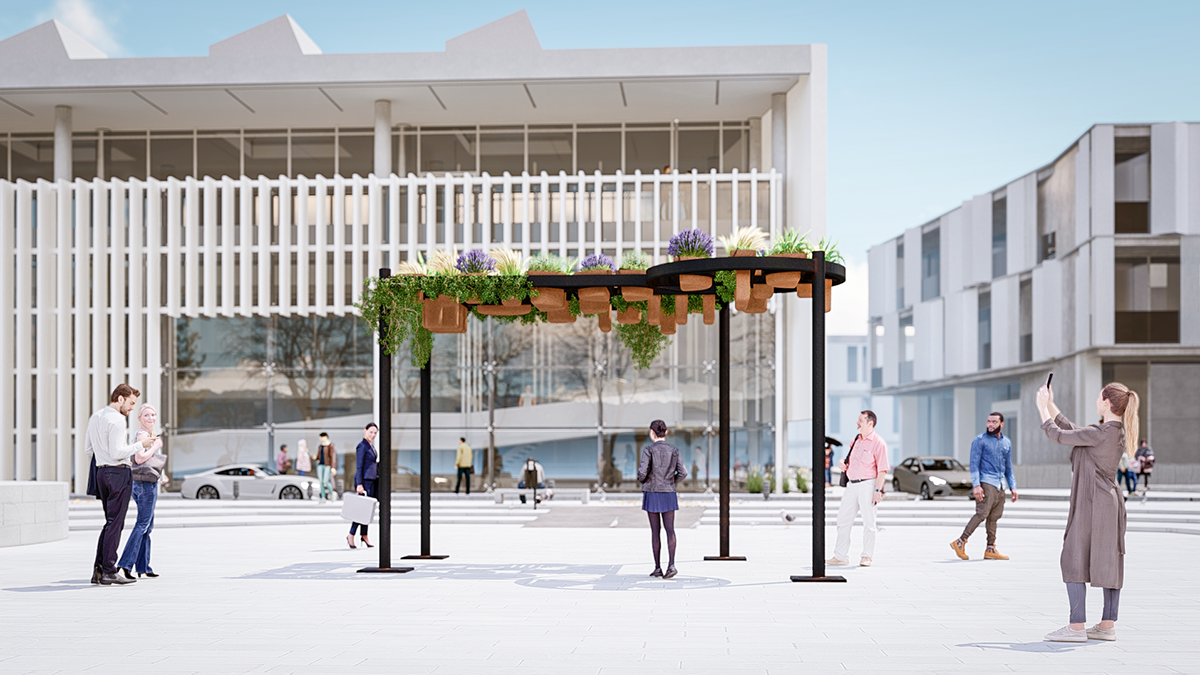 A green shading system for the public space that provides shade from the day of its construction without causing any disturbance to the infrastructure. The shading has a built-in water system that provides a very pleasant stay for pedestrians in the heavy heat and an experience of nature in the heart of the city.
