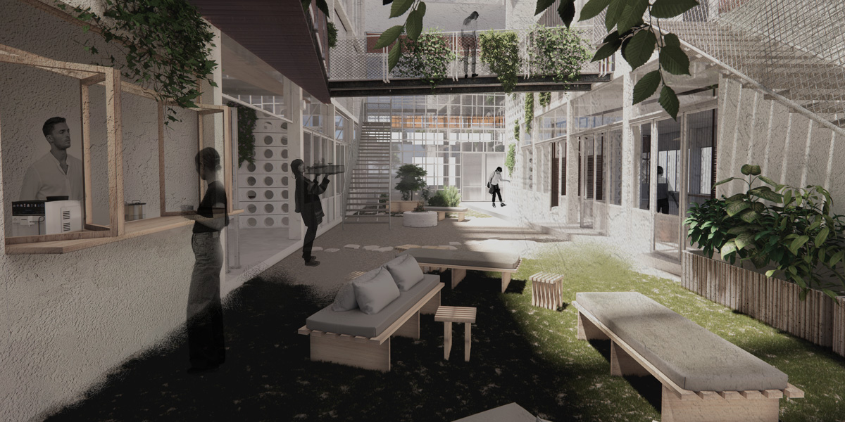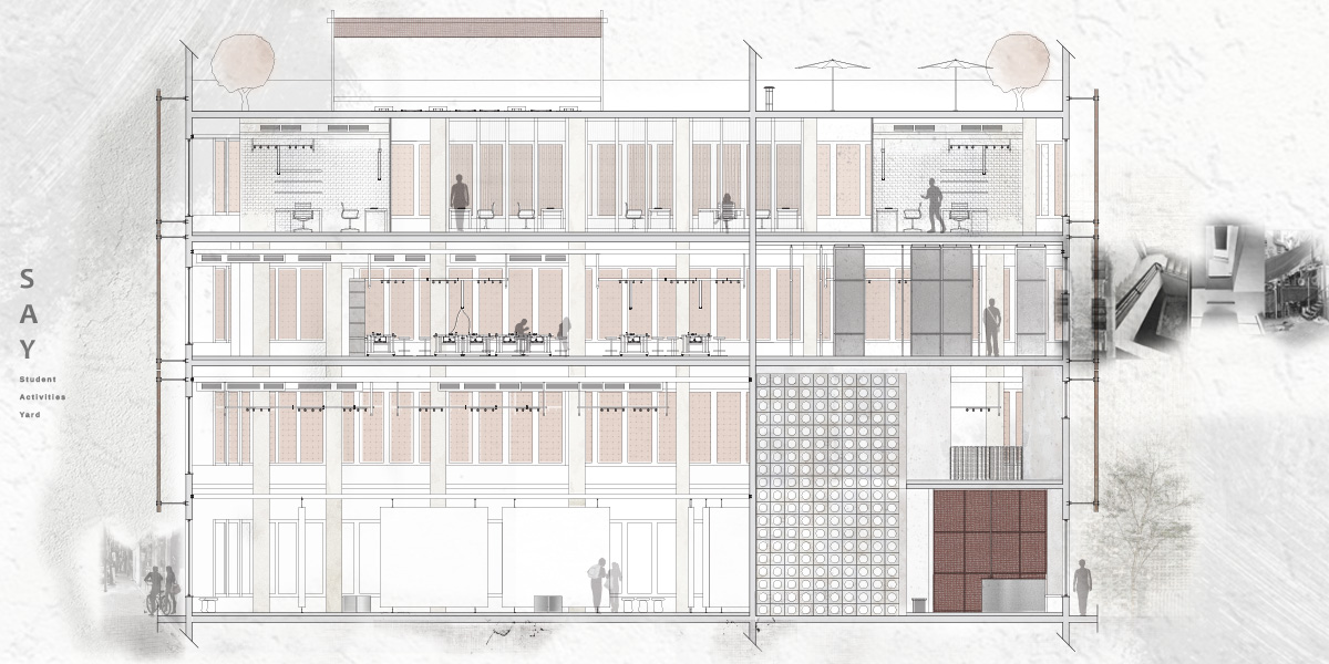 מרכז סטודנטיאלי קהילתי המשלב מרחבי לימוד ומחקר, פנאי ותרבות תוך הכנסתו של ציר דרך יפו אל המבנה וקשירתו לשכונה באמצעות חצר פנימית שיתופית ומרחבים המזמינים את הסטודנטים לשוטט במקום ולשהות בו.