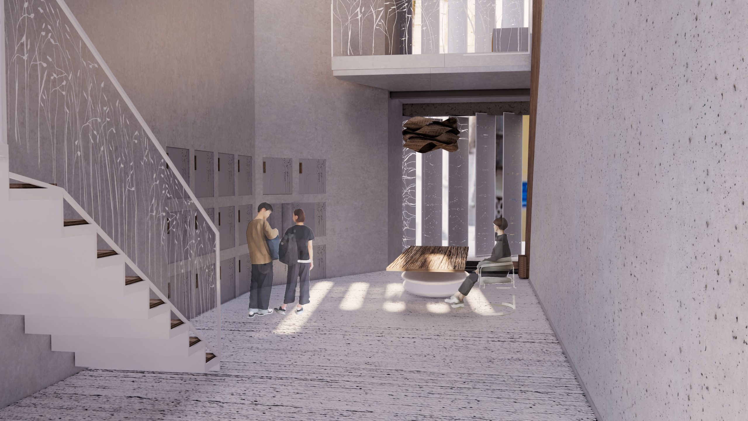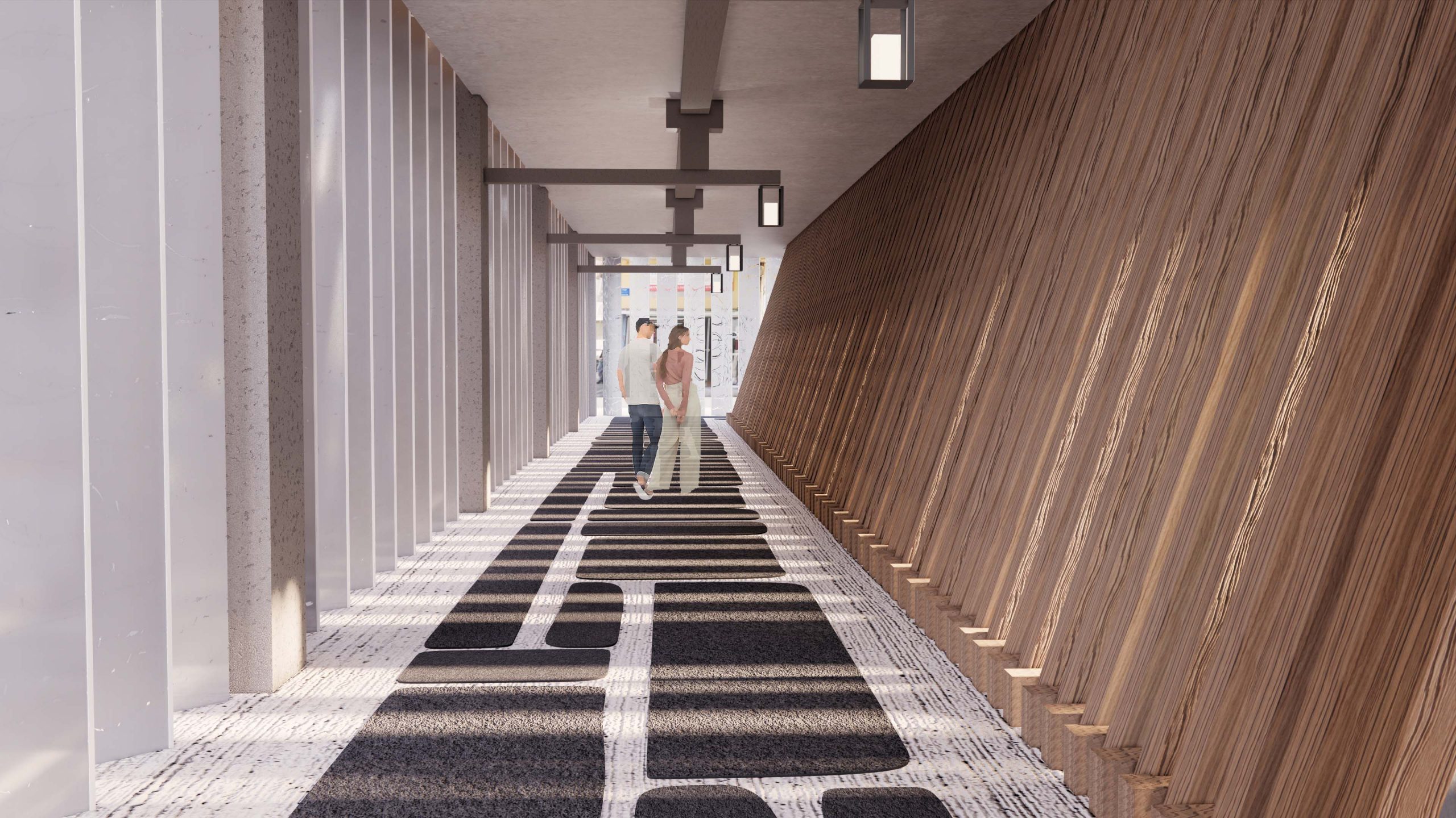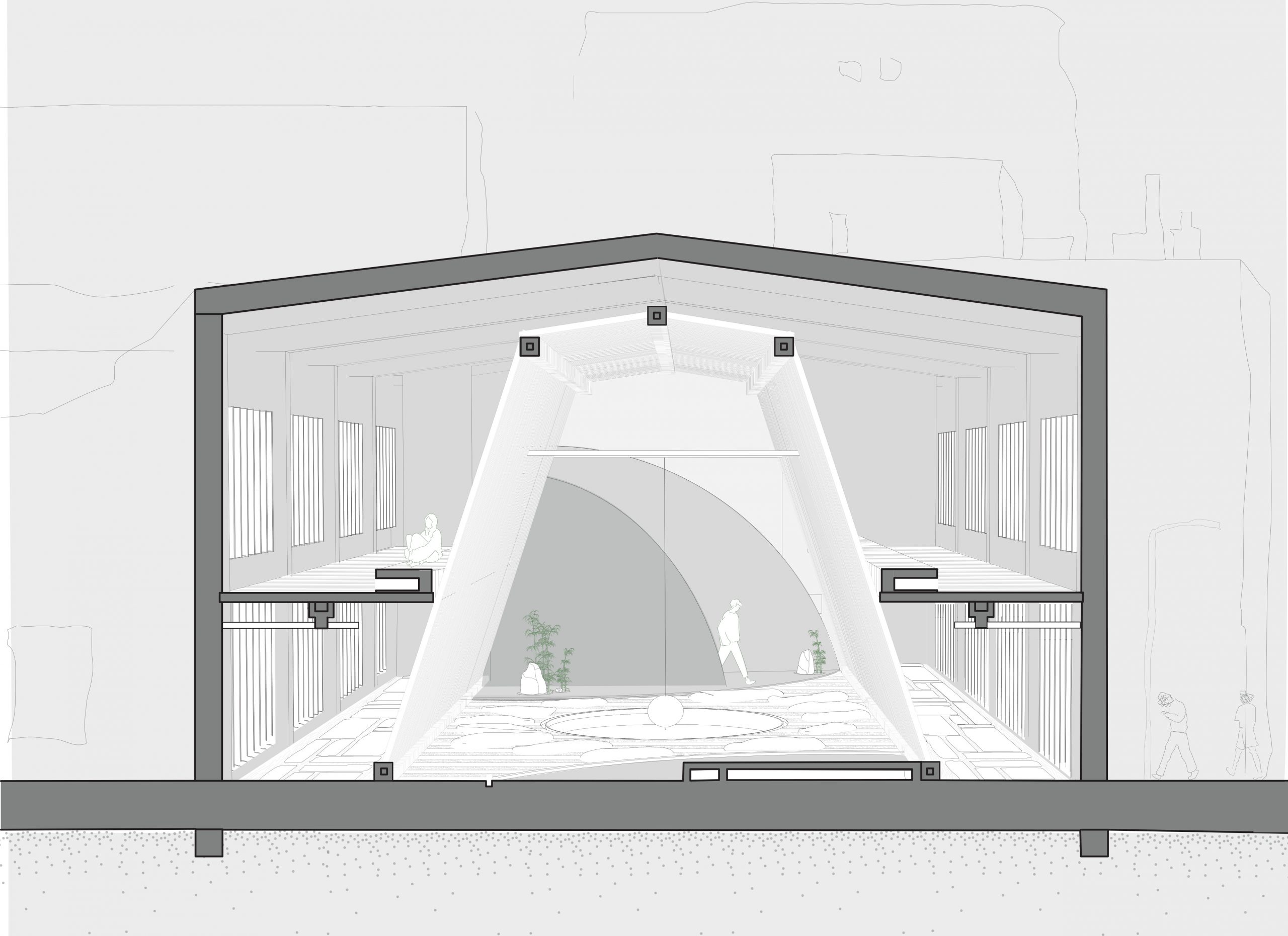 מרחב פתוח המאפשר לעצור לרגע מחיי היום-יום ולבצע פעילות מדיטטיבית על פלטפורמות שונות; חוויית המרחב מקנה שקט להקשבה עצמית על רקע צלילי המרחב העירוני.