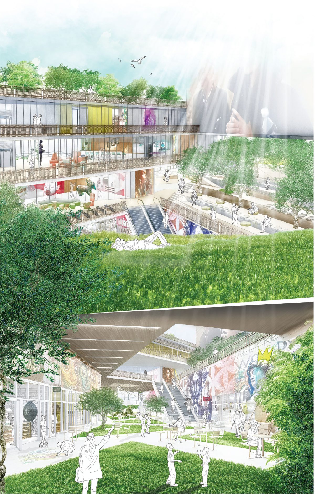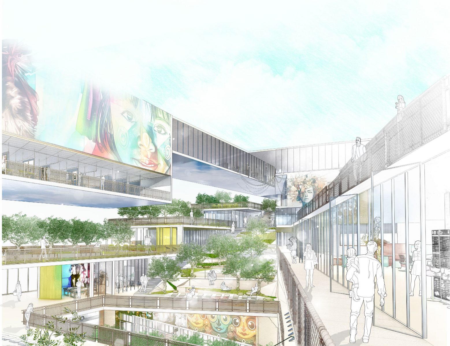 פיתוח שוק רחובות כמרכז עירוני וורטיקלי פתוח ודינאמי הפועל כחממת הכשרה, תרבות, עבודה ופנאי לעולים ומקומיים כאחד. המרכז בנוי כספירלה סביב חלל פתוח לשמים ומציע מגוון מקומות מפגש ואינטראקציה חברתיים.