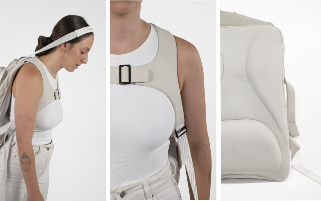 עיצוב תעשייתי נועה שטרן Noahstern95@gmail.com NOAH תיק גב ליום-יום המותאם למבנה הגוף של נשים. עיצוב התיק מתמקד בחלוקת העומס בין הגב, החזה והאגן כדי שיהיה נוח לנשיאה.