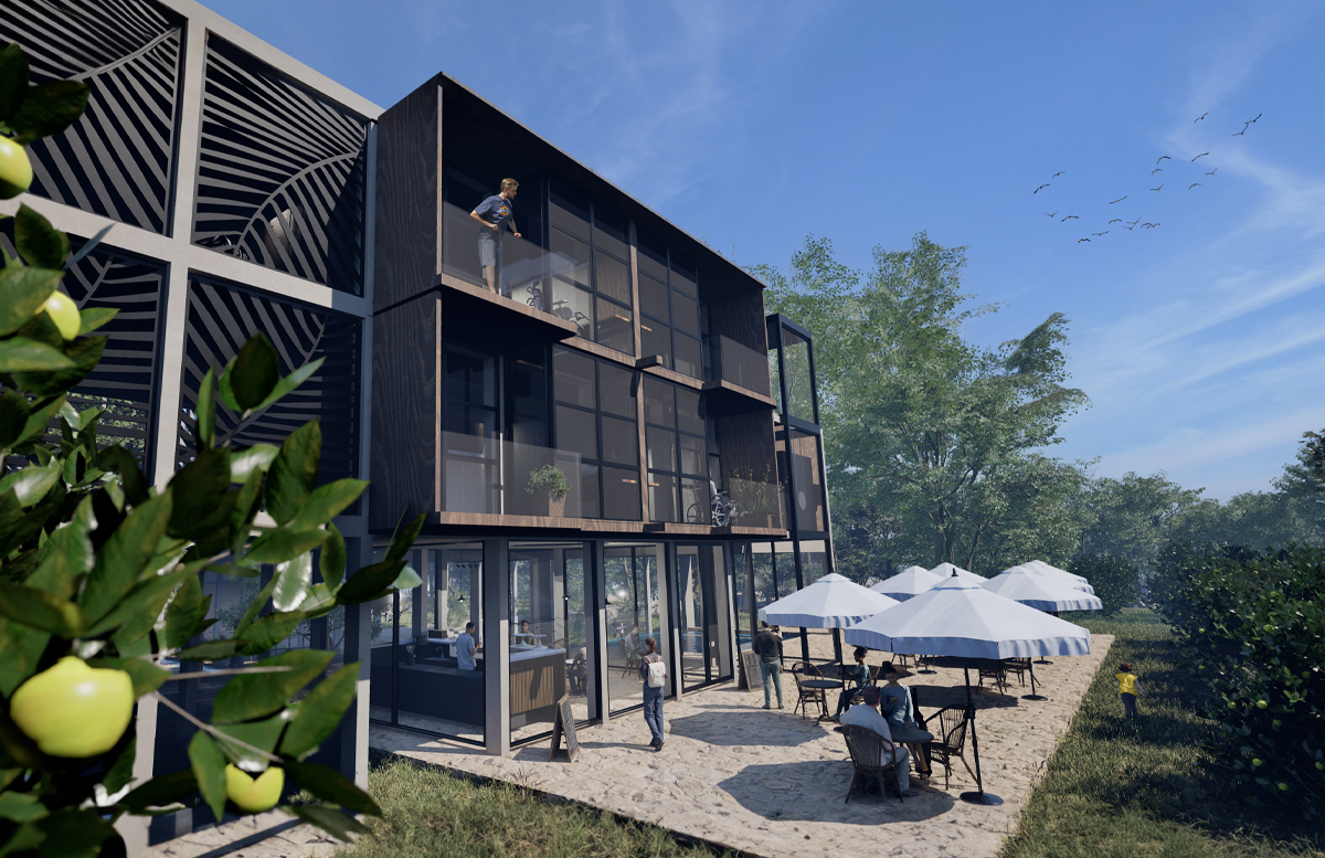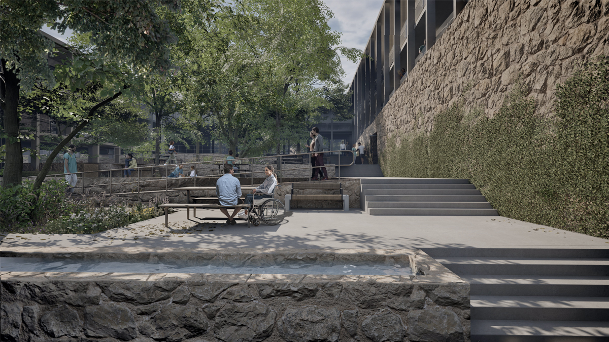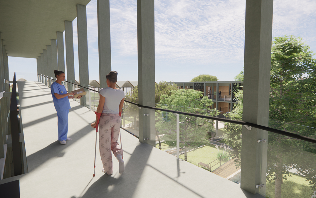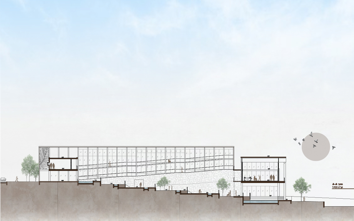 מרכז שיקומי מגשר המעודד תנועה ופעילות באוויר הפתוח כחלק מגישת השיקום. הפרויקט מחדש מבנה בית ספר נטוש בשכונת נווה דוד שבחיפה, נוטע בוסתן, פורץ שביל המלווה את זרימת מי הוואדי מהכרמל לים ומנגיש את הדרך לחוף.
