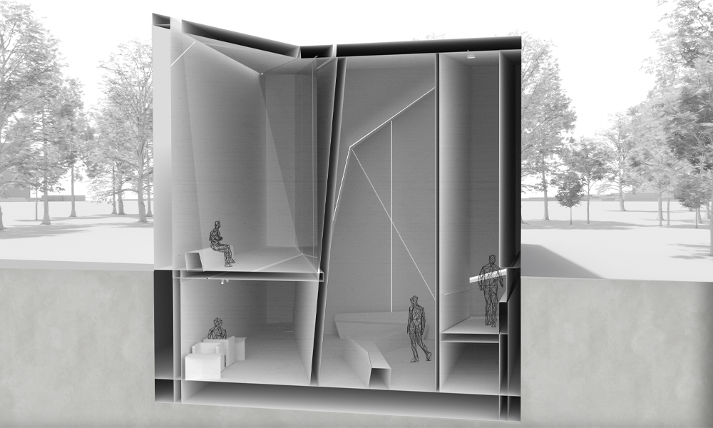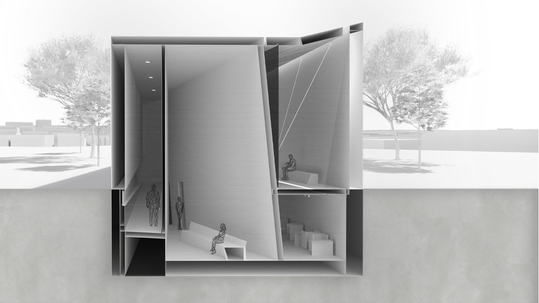Designing an urban chapel for a secular population in the heart of Gan Meir; The chapel pushes the boundaries of the spirit-matter relationship to create a religion-free spiritual experience. Designing an abstract space using light, darkness, and a longitudinal movement element.
