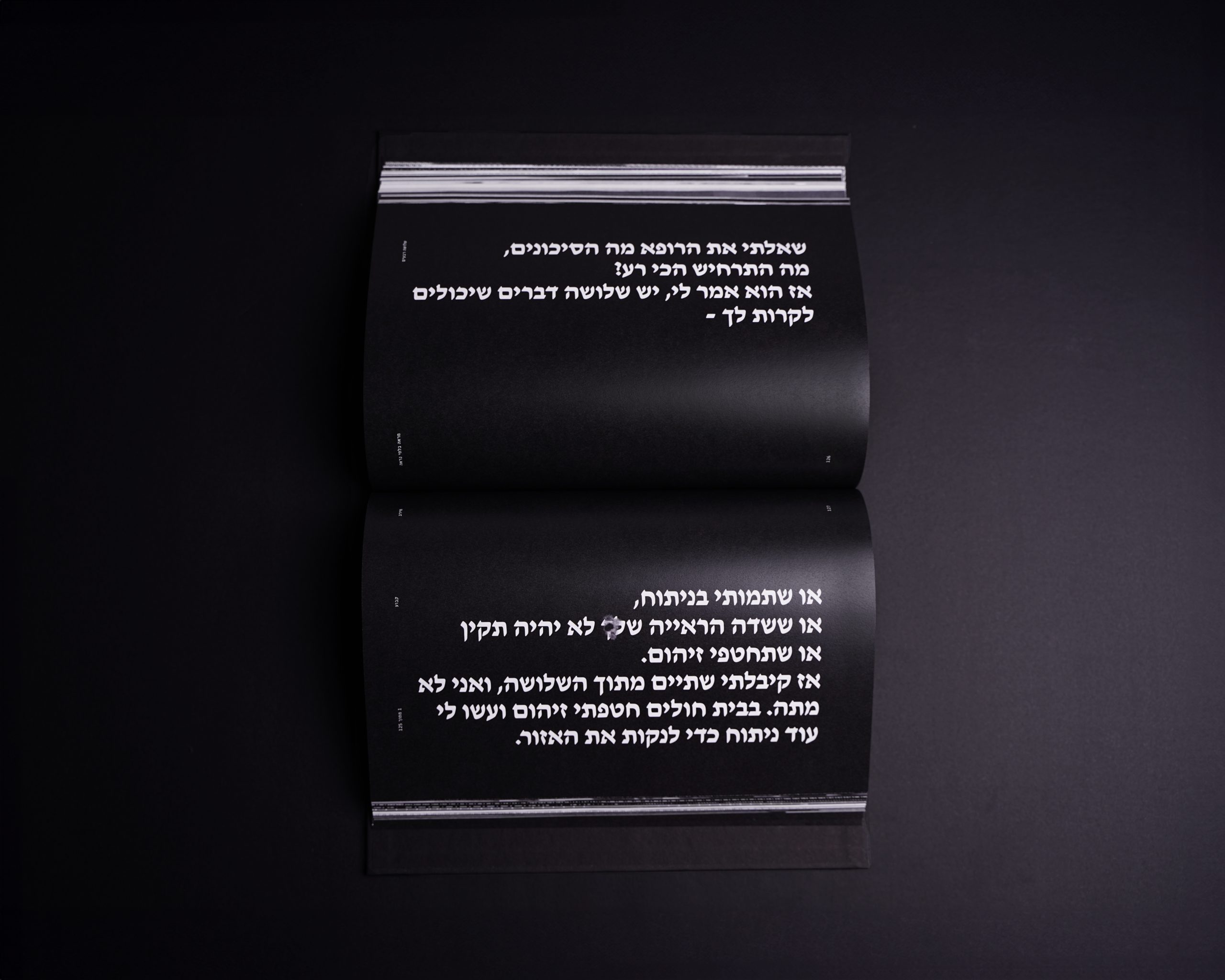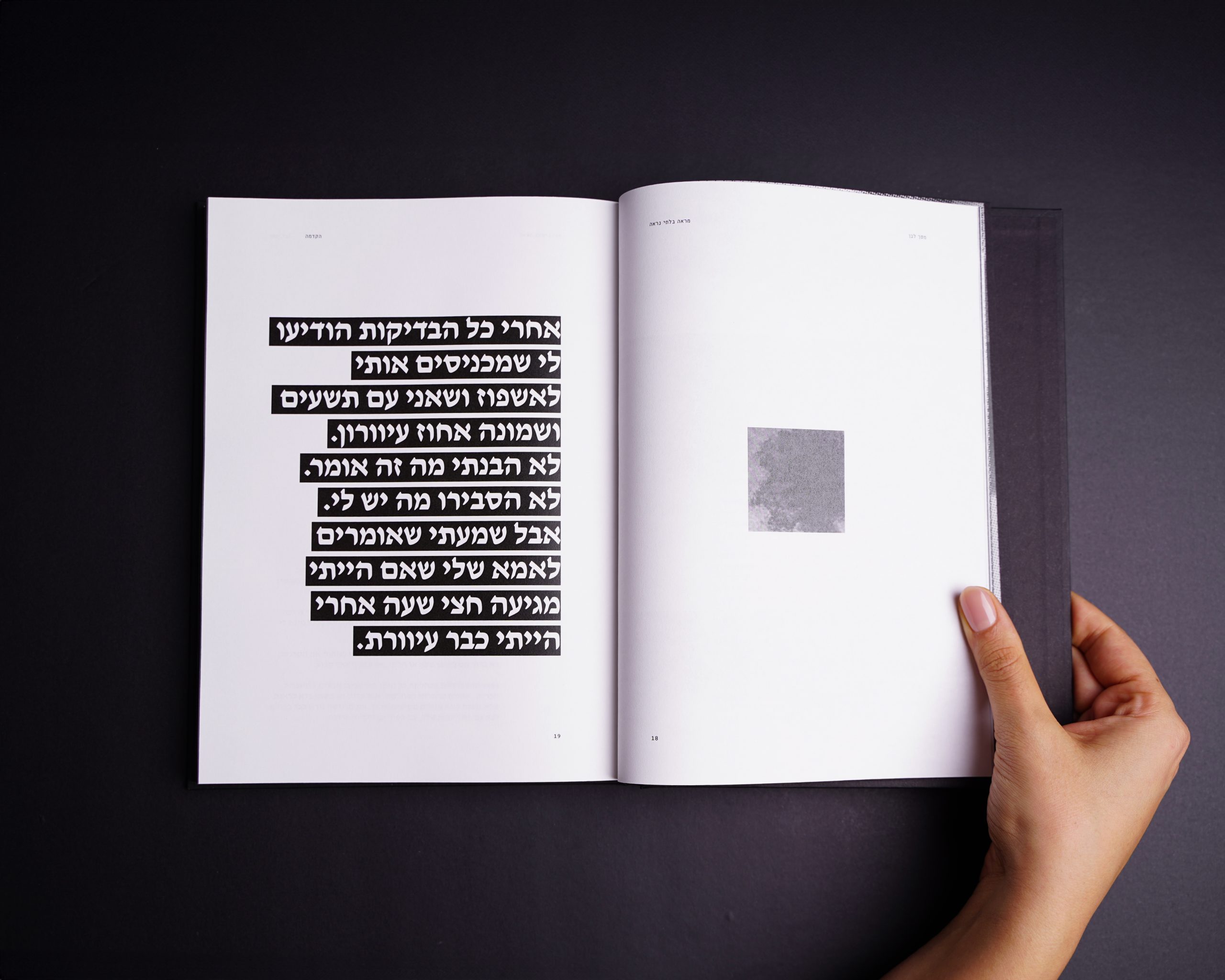 An experimental journey of vision loss. The book presents four personal stories that deal with various instances of blindness alongside medical research and a visual interpretation for each.