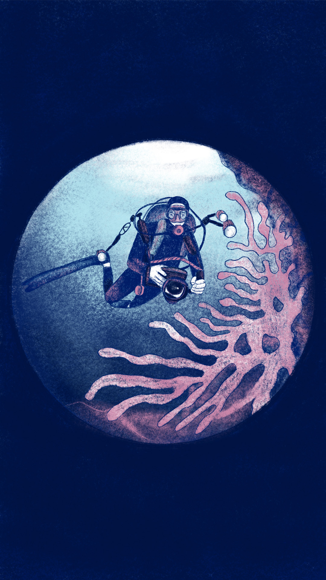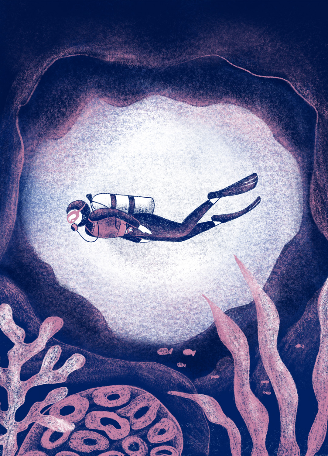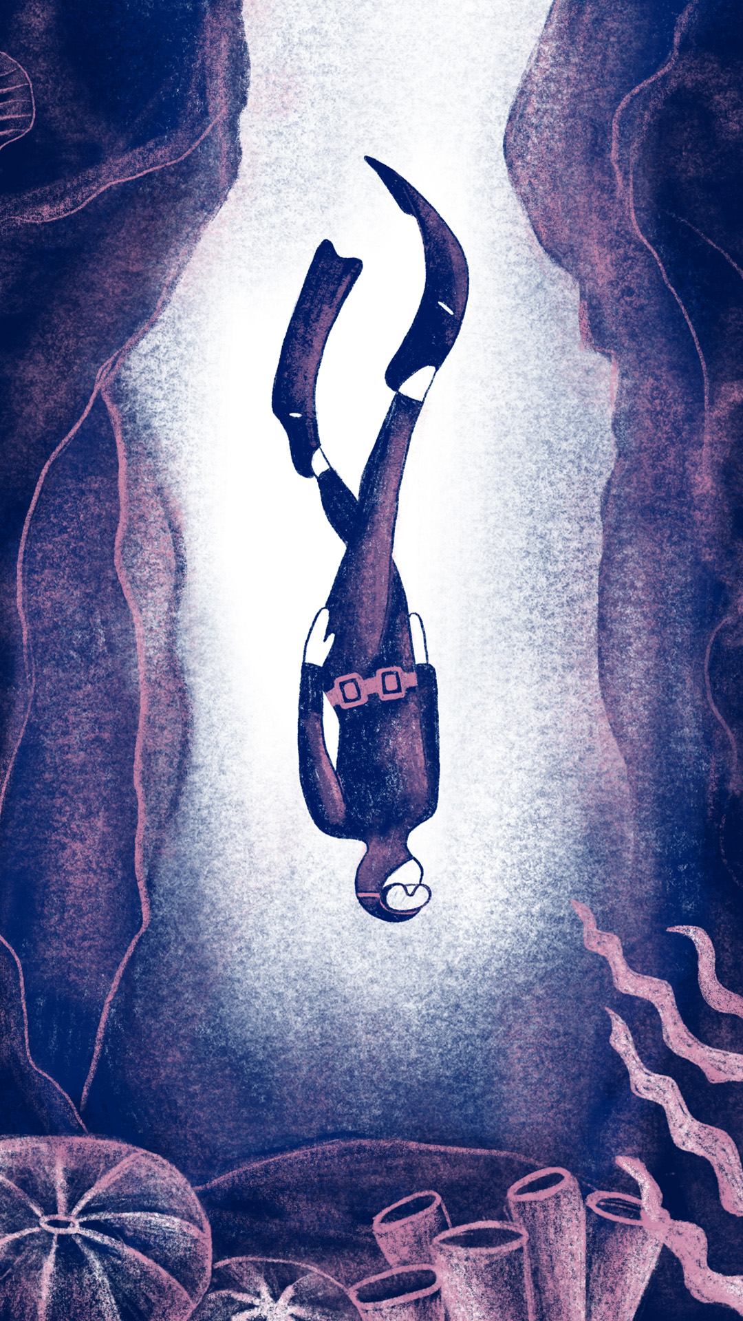 A scrolling telling site that presents diving as a tool for healing and treating the psyche through personal stories of people from different emotional backgrounds.