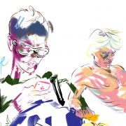 בחרתי בקומיקס מתוך הספר ״בטיפול״, בו ציירתי סיטואציה מביכה/מצחיקה בין מטופלת למטפלת. המבוכה העזה שחווה המטופלת באה לידי ביטוי בציור בצבע האדום שלא מופיע לפני כן.