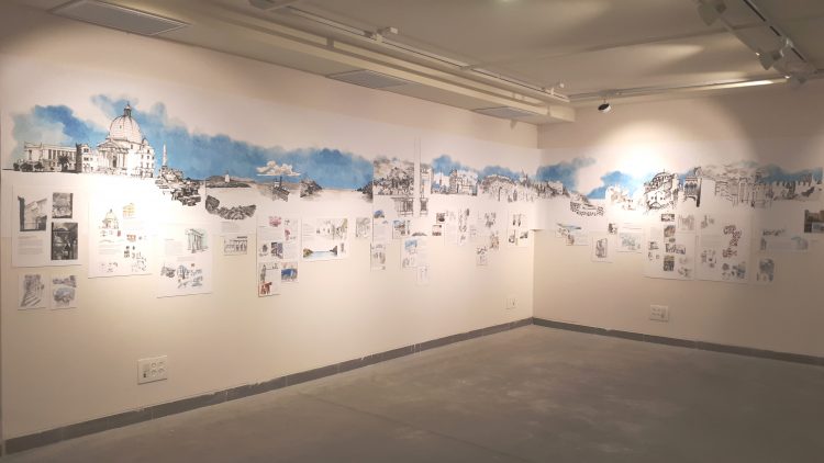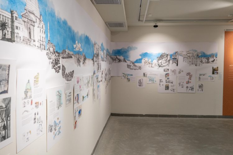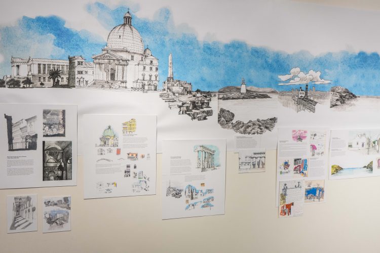 בנובמבר האחרון נפתחה תערוכה בנושא 'ערים אידיאליות ואוטופיה' בגלריה ויטרינה במכון הטכנולוגי חולון. התערוכה נאצרה בהשראת יצירותיו וכתביו של האמן והאדריכל לאונרדו דה וינצ'י, ומציגה דוגמאות של פרויקטים שעוסקים בסוגיות של נוף, עיר ובניין. בחרנו להתמקד ביצירה אחת ומיוחדת, ציור קיר שנעשה במיוחד לתערוכה על-ידי האדריכל ד"ר איליאס מסינס, המשלב רישומים וטקסטים ממסעותיו בערים ברחבי העולם.