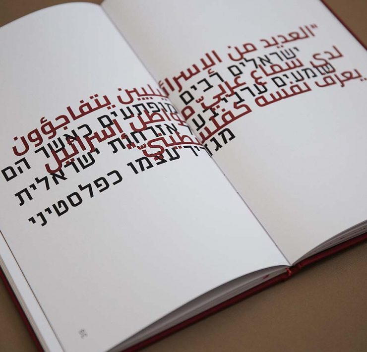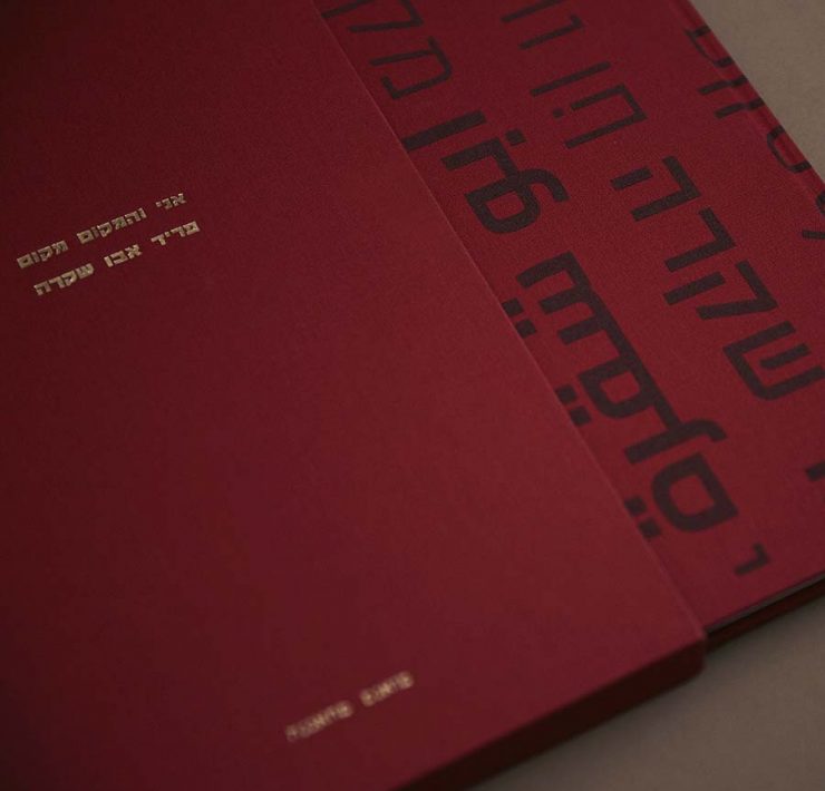 הקטלוג שלי מציג את העבודות של האמן פריד אבו שקרה. אבו שקרה מתייחס אל הנוף, מכנס ומפרק אותו לגורמים רעיוניים ויזואליים כדי להעניק לו היבט אחר, פוליטי וחברתי. החורים, האורנמנט והמטוסים כוללים ביטויים אידיאולוגיים שונים: האדמה, המקום, המולדת, הגעגועים. כך המקום תופס נפח גדול ביצירותיו של אבו שקרה, מגוון ומשקף את הקשר שלו למקום ולפרטים הקטנים האינטימיים שלו. בדים, רקמות ודקורציה מסמלים את היחס אל המקום כעדות חומרית, תרבותית ורוחנית המדגישה את השייכות, עד שאבו שקרה והמקום הופכים להיות יחידה אחת. בקטלוג אני מראה תהליך טיפוגרפי של משחק בין השפה הערבית לעברית, שמתחיל בחוסר התאמה, בקונפליקט וחוסר שוויון בגודל, בצבע ובמיקום של האותיות. תהליך זה מסתיים בהתאמה וזרימה של שתי השפות יחד. אני מאמין שהדרך שאותה עברו השפות בקטלוג היא הדרך שאנחנו כבני אדם החיים במקום אחד צריכים לעבור, כדי לחיות ביחד בשוויון, אהבה ושלום.