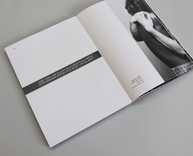 עיצבתי קטלוג לאמנית הפינית יילו סוסירג׳ה (Ilu Susiraja), צלמת פורטרטים עצמיים יוצאי דופן העוסקים בדימוי עצמי ובביקורת חברתית. האומץ, האותנטיות והקיצוניות הם שחיברו אותי לאמנית. סוסירג'ה מציעה זווית הסתכלות חדשה על ״סלפי״, ומערערת מוסכמות חברתיות בצורה בוטה וגסה. עיצוב הטיפוגרפיה מלווה את האמנית ומפנה אליה את אור הזרקורים, תוך שמירה על פשטות ומינימליזם. סכין החיתוך במכונת הפלוטר נשחקה ויצרה לכלוך בחיתוך האותיות, ומתוך הטעות נוצרה הכריכה: היופי שבחוסר השלמות.