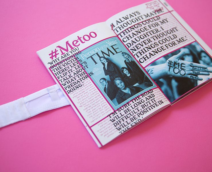 את הקטלוג שלי בחרתי להקדיש להלבשה התחתונה במאה השנים האחרונות ולנשים שלבשו אותה. הקטלוג סוקר עשרה עשורים ומספר את ההיסטוריה של ההלבשה התחתונה, מהשמרנית ועד הסליזית ביותר, ומקיף את האופנות והטרנדים הכי חמים בזמנם. בחרתי לספר את סיפורי התקופה בעזרת אופנת ההלבשה התחתונה, כשבכל עשור התמקדתי בסיפור פמיניסטי מרכזי אשר ניתן ללמוד דרכו על מעמד הנשים באותה התקופה ועל מידת שילובן בחברה; לעתים זו תנועה מרגשת של נשים חזקות ולעתים פמיניסטיות איקוניות שפעלו בשביל ולמען נשים. בתהליך העיצוב שאבתי השראה מפנזינים ישנים ומספרי אופנה, בנסיון להעניק לקטלוג מראה אגרסיבי ומצד שני מהודק, שיבטא תחושות של נשיות מתפרצת ועוצמתית לצד רכות וחוכמה נשית.