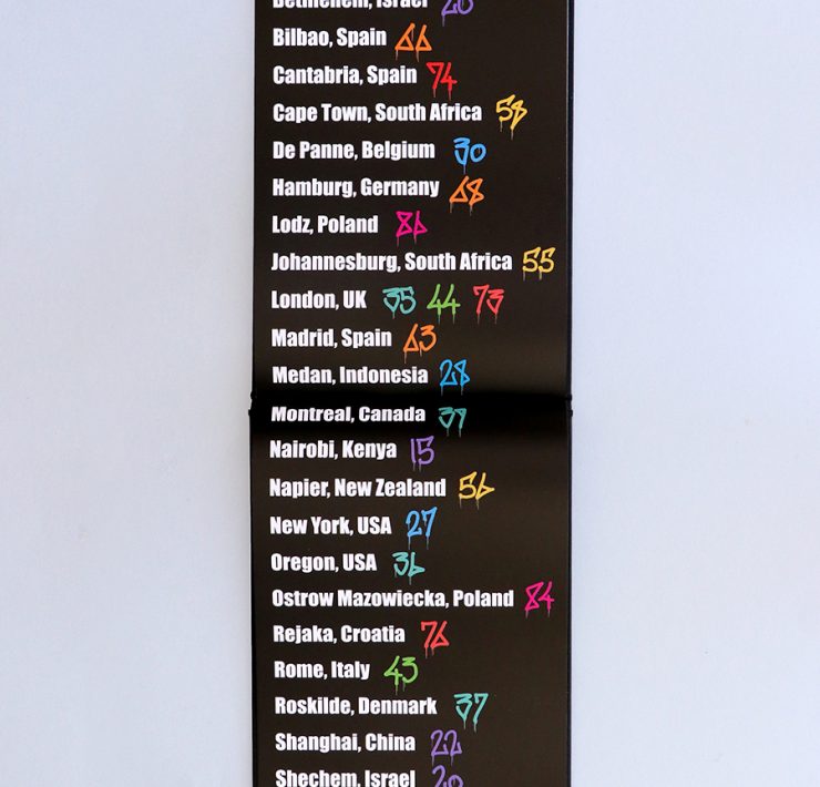 הקטלוג שלי מציג עבודות של שמונה אמני רחוב מרחבי העולם אשר מדגישים בעיניי את התהליך המרתק שעברה אמנות הרחוב: מגרפיטי מסורתי בעל סטיגמות שליליות ועד אמנות שפרצה את גבולות הגלריה ונעשה בה שימוש במגוון רחב של טכניקות ומדיומים. הפורמט האלבומי הרחב נועד להעביר תחושה של שוטטות ברחוב ארוך. במספר עבודות בחרתי להשתמש בעמודים מתקפלים מפני שהרגשתי שביצירות הללו עמוד אחד לא מצליח להעביר את העוצמה והאימפקט של היצירה. לאורך כל העבודה על הקטלוג, הדגש שלי היה על ניפוץ הסטיגמות. בחרתי ליצור שפה מוקפדת לצד נגיעות לטרינג המזוהות עם טיפוגרפיית רחוב ונזילות האופייניות לטכניקת הספריי. השילוב בין השתיים מייצג בעיניי את האמנות הזו, השייכת לכולם ומהווה חלק בלתי נפרד מהנוף העירוני. אמנות שמצד אחד יכולה להיתפס כפשע ולהימחק כעבור מספר שעות על ידי המשטרה ומנגד יכולה להימכר במכירה פומבית ביותר ממיליון דולר.