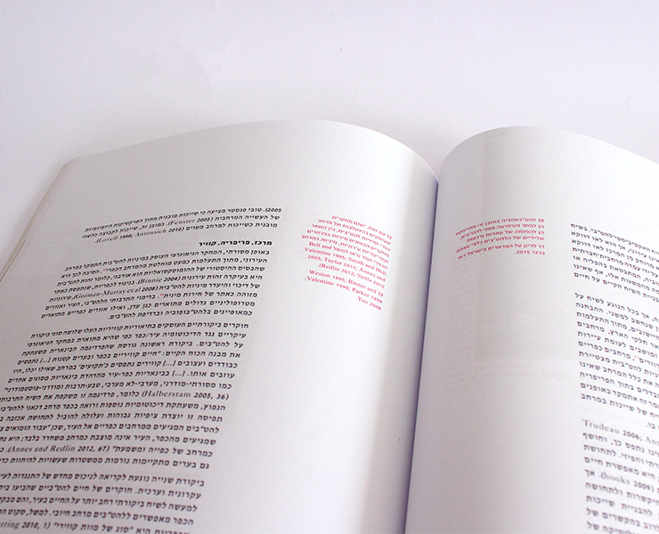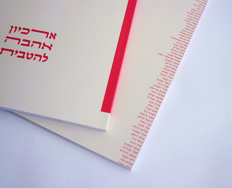 מיכאל ליאני הוא אמן וידאו וסטילס ישראלי. הכרתי אותו לראשונה דרך הפרויקט שלו "ארכיון אהבה להט"בית" – אוסף צילומי פילם של זוגות להט"בים מרחבי הארץ בביתם. הפרויקט התחיל בתקופת הקורונה כשכל העולם אפף תחושה אפוקליפטית, תהיה קיומית וחוסר ודאות גדול. רק טבעי שיעלה הצורך להתעסק בדבר שרובנו, אם לא כולנו, מוצאים בו נחמה, יציבות, חום וביטחון – אהבה. במהלך המחקר על ליאני ועל עבודותיו, גיליתי לא מעט קווי דמיון בינינו- להטב"ים שגדלו בפריפריה במשפחה שיש בה צד מסורתי ודתי, עם תחושת שונות מסוימת, שמצאה ביטוי באמנות וביצירה. עבור שנינו מרכז הארץ היא המקום בו הבנו את מי אנחנו אוהבים והבנו שזה בסדר. אנחנו חולקים רגישות ומשיכה לאחרות, ליופי שיש גם במוזר. יש גם את הרצון לתת ביטוי לשוליים, למשפחה, למזרחיות ולמסורות עליהן גדלנו. בבחירות שעשיתי בעיצוב הספר, רציתי לבטא את השפה החזותית של ליאני, שבאה לידי ביטוי בפרויקט האהבה הלהט"בית וגם בעבודותיו המוקדמות – מצולמים עם מבט ישיר, הבעה טבעית, תחושה ביתית חמה ונינוחה, לצד נוכחות חזקה, גאה ובטוחה בעצמה.