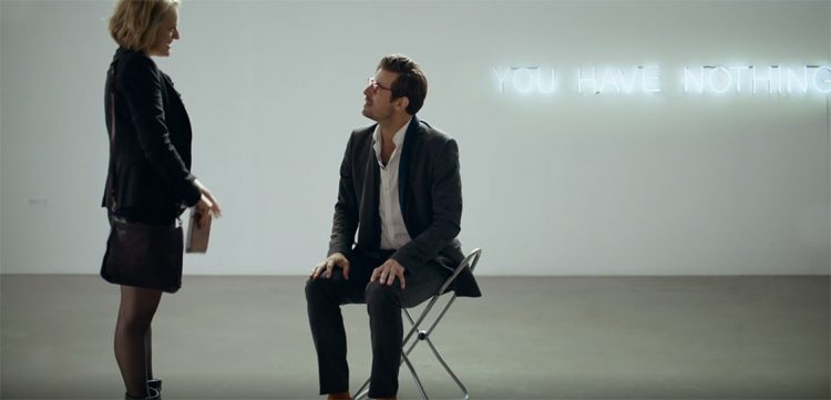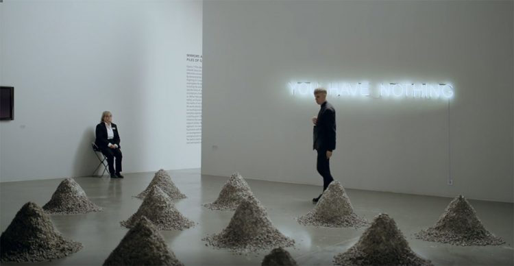 הסרט נפתח גם הוא בראיון, והפעם המרואיין הוא כריסטיאן והמראיינת היא עיתונאית שמגלמת השחקנית אליזבת' מוס. כשנשאל על עבודתו, כריסטיאן מדבר על החשיבות שבבחירת התערוכות הנכונות, המודרניות, העכשוויות ואפילו העתידניות ביותר. זו מהות המוזיאון. הראיון נערך בחלל תערוכה, ועל הקיר מאחורי כריסטיאן נתלה הכיתוב הבוהק "YOU HAVE NOTHING". בהמשך נחשפת שאר התערוכה: עשרות ערמות חול אפורות וקטנות בגודל שווה מפוזרות בתוך שטח מסומן. נראה שאנשים בעלי טעם מודרני מתעניינים באמנות קונספטואלית ומינימליסטית. האם הם מתעניינים באמנות גם ברמה הרגשית, או שמדובר בחוויה שהפכה להיות מנוכרת ביסודה- מתבוננים ביצירה, מצלמים תמונה וממשיכים הלאה?