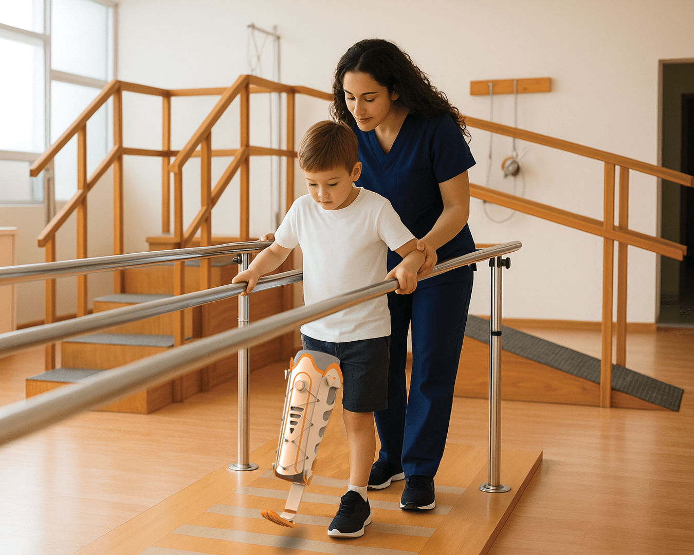 FIRSTEP מאפשר תרגול נשיאת משקל, שיווי משקל וצעידה ראשונית בצורה מדויקת ובטוחה תוך התאמה למידות שונות של ילדים. המוצר כולל מבנה טלסקופי מתכוונן, שרוול ניפוח פנימי להתאמה לגדם, ואלמנט גרפי אישי שמחזק את תחושת השליטה, החיבור הרגשי ושיתוף הפעולה של הילד בתהליך השיקום.