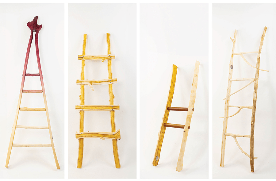 אחרי מחקר חומרי מעמיק בחרתי ליצור ארבעה סולמות מעץ תות ירוק (עץ טרי ורטוב). כל סולם מכיל אלמנטים עליהם למדתי במהלך המחקר."