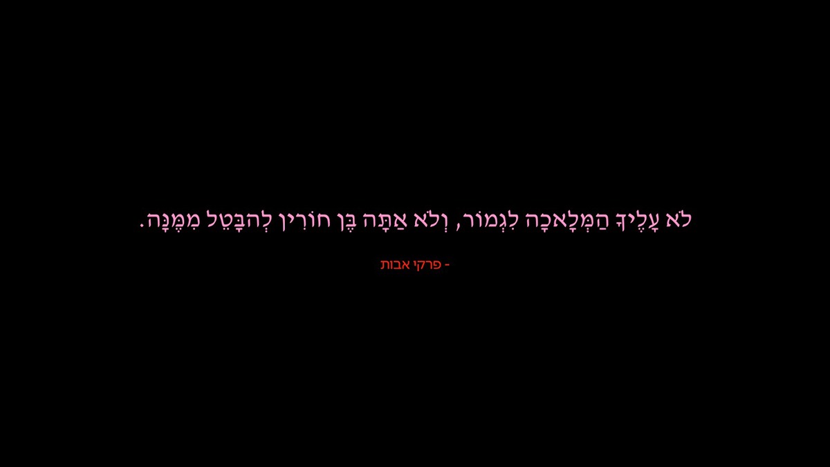 "לא עליך המלאכה לגמור ולא אתה בן חורין להיבטל ממנה" (פרקי אבות).
