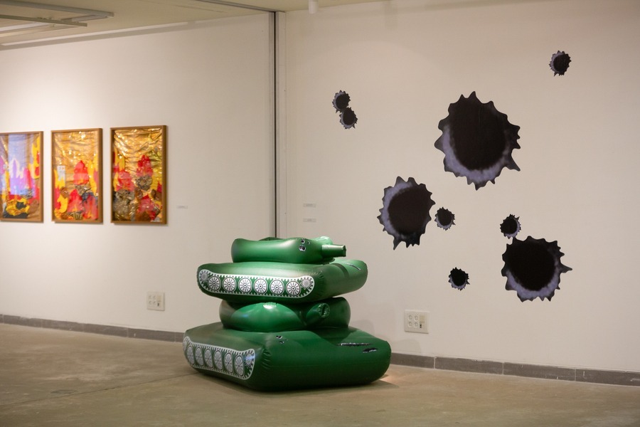 השילוב של צבעוניות ילדותית, חומריות מתנפחת וייצוג של אלימות וחרדה יצר תערוכה שמצד אחד נראית מפתה ושמחה ומצד שני מכילה עומק כואב וקשה. כשילדיי נכנסו לתערוכה הרגשתי שזה משקף בדיוק את מה שניסיתי לעשות בבית: לקחת מציאות בלתי נסבלת, לטשטש אותה, "להקליל" אותה, אבל בעצם להראות את הפער בין החזות התמימה לבין המציאות המאיימת."