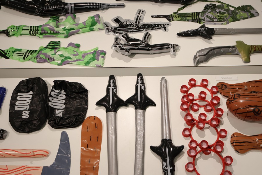 בשלב מסוים הבנתי שאני יכולה להשתמש בתחושות האלה בתוך האמנות. החיפוש אחר אסקפיזם והבריחה מהחדשות הובילו אותי לתוך שעות של גלישה ברשת ורכישת חפצים. מצאתי את עצמי רוכשת עוד ועוד מוצרים, ובעיקר חפצים מתנפחים שמדמים כלי נשק ואלמנטים מעולם המלחמה. בלי לשים לב, אספתי כמעט כל מוצר מתנפח "מלחמתי" שקיים ברשת העולמית.
