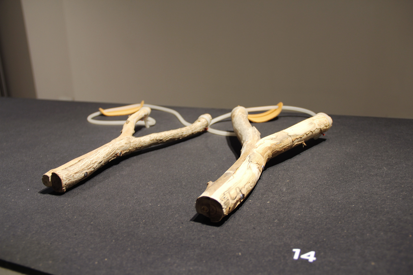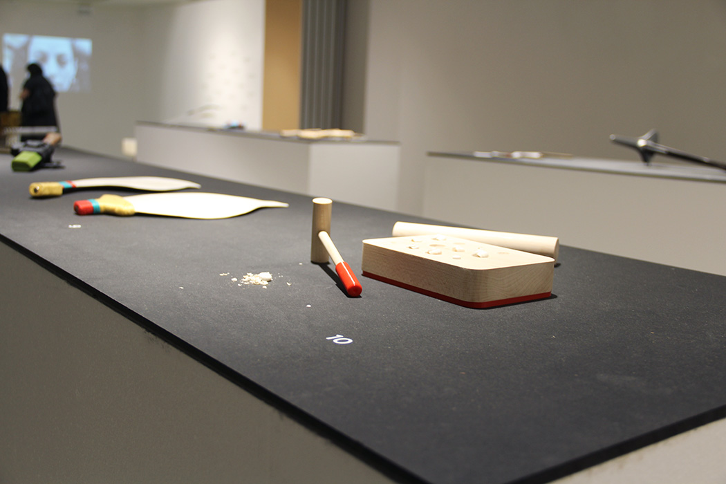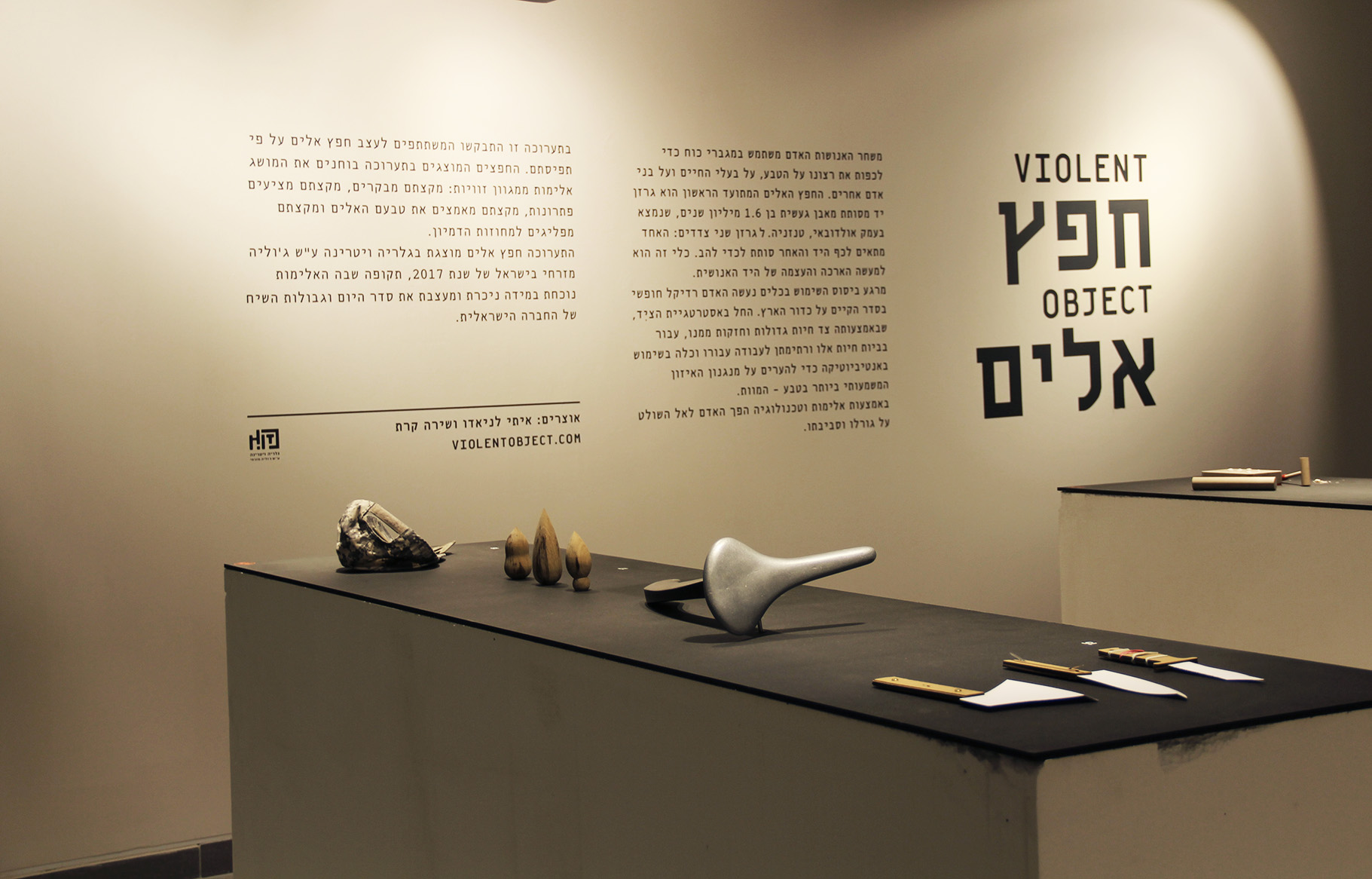 שירה קרת ואיתי לניאדו אוצרי התערוכה: “משחר האנושות האדם משתמש במגברי כוח כדי לכפות את רצונו על הטבע, על בעלי החיים ועל בני אדם אחרים. החפץ האלים המתועד הראשון הוא גרזן יד מסותת מאבן געשית בן 1.6 מיליון שנים, שנמצא בעמק אולדובאי, טנזניה. לגרזן שני צדדים: האחד מתאים לכף היד והאחר סותת לכדי להב. כלי זה הוא למעשה הארכה והעצמה של היד האנושית. מרגע ביסוס השימוש בכלים נעשה האדם רדיקל חופשי בסדר הקיים על כדור הארץ. החל באסטרטגיית הציִד, שבאמצעותה צד חיות גדולות וחזקות ממנו, עבור בביות חיות אלו ורתימתן לעבודה עבורו וכלה בשימוש באנטיביוטיקה כדי להערים על מנגנון האיזון המשמעותי ביותר בטבע – המוות.