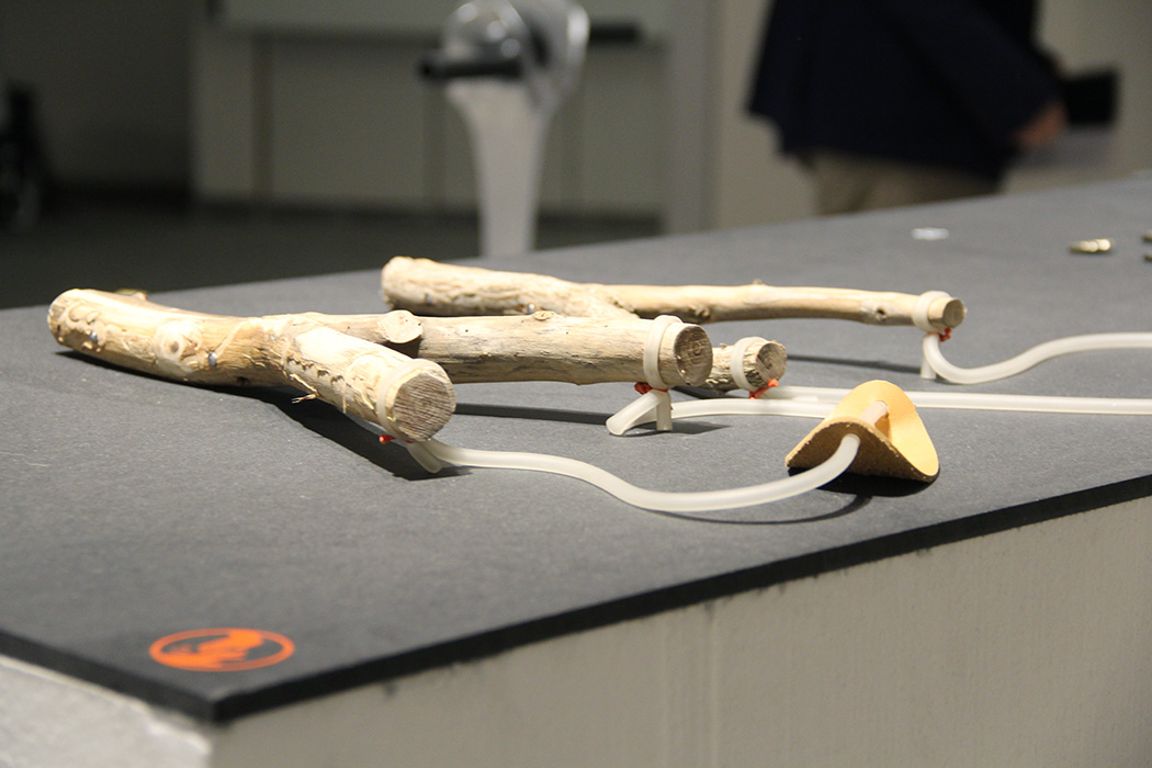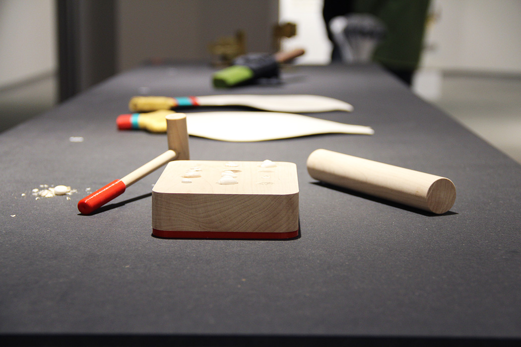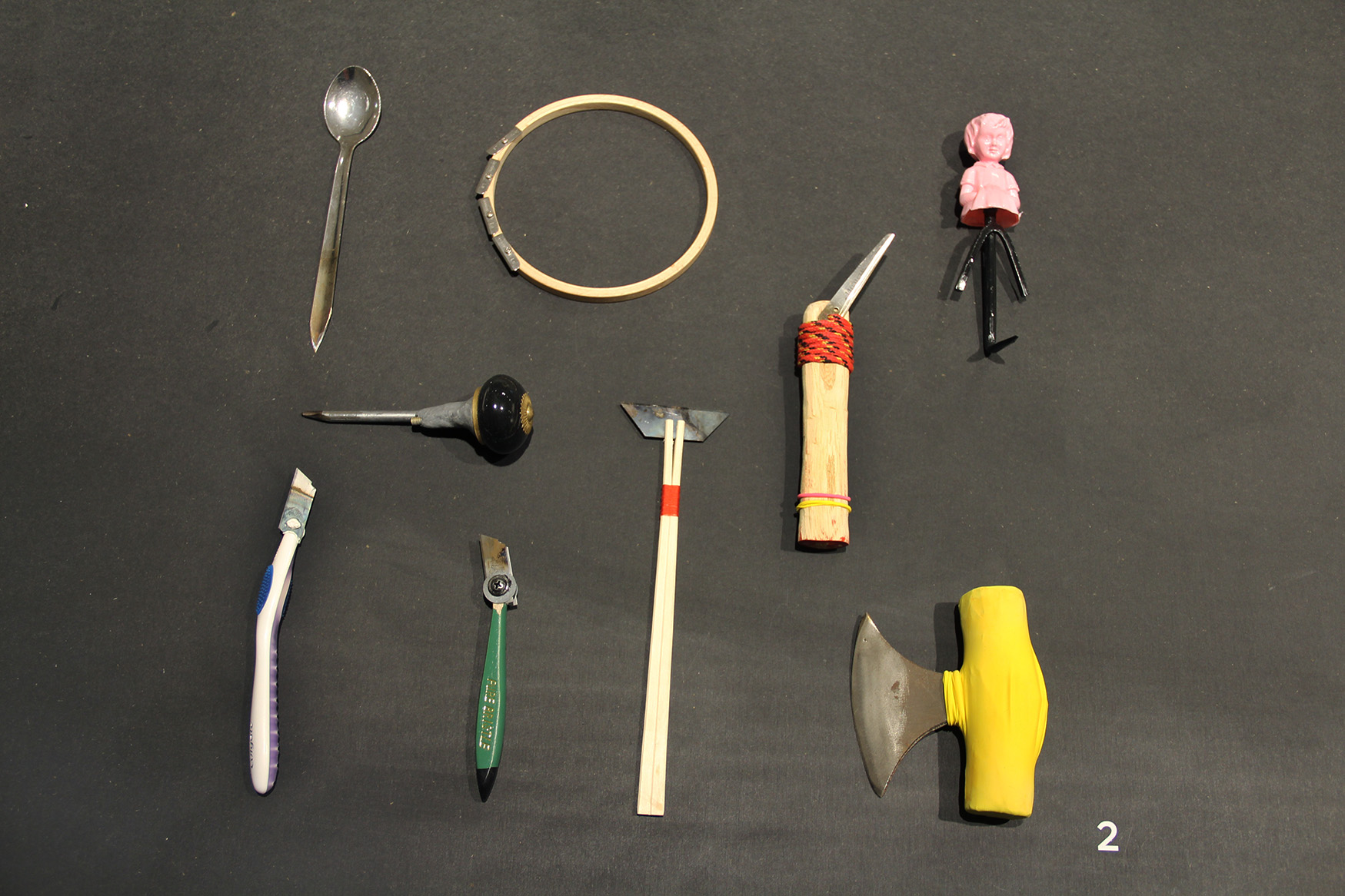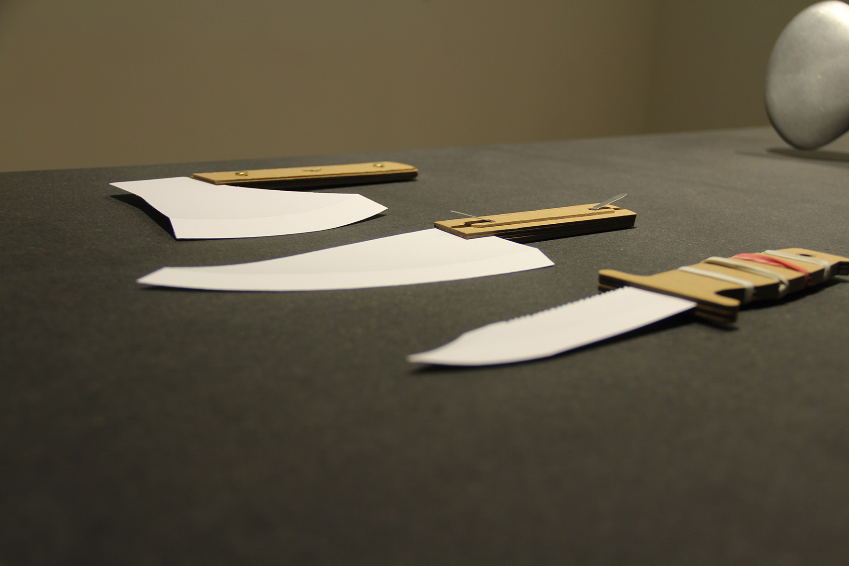 שירה קרת ואיתי לניאדו אוצרי התערוכה: “משחר האנושות האדם משתמש במגברי כוח כדי לכפות את רצונו על הטבע, על בעלי החיים ועל בני אדם אחרים. החפץ האלים המתועד הראשון הוא גרזן יד מסותת מאבן געשית בן 1.6 מיליון שנים, שנמצא בעמק אולדובאי, טנזניה. לגרזן שני צדדים: האחד מתאים לכף היד והאחר סותת לכדי להב. כלי זה הוא למעשה הארכה והעצמה של היד האנושית. מרגע ביסוס השימוש בכלים נעשה האדם רדיקל חופשי בסדר הקיים על כדור הארץ. החל באסטרטגיית הציִד, שבאמצעותה צד חיות גדולות וחזקות ממנו, עבור בביות חיות אלו ורתימתן לעבודה עבורו וכלה בשימוש באנטיביוטיקה כדי להערים על מנגנון האיזון המשמעותי ביותר בטבע – המוות.